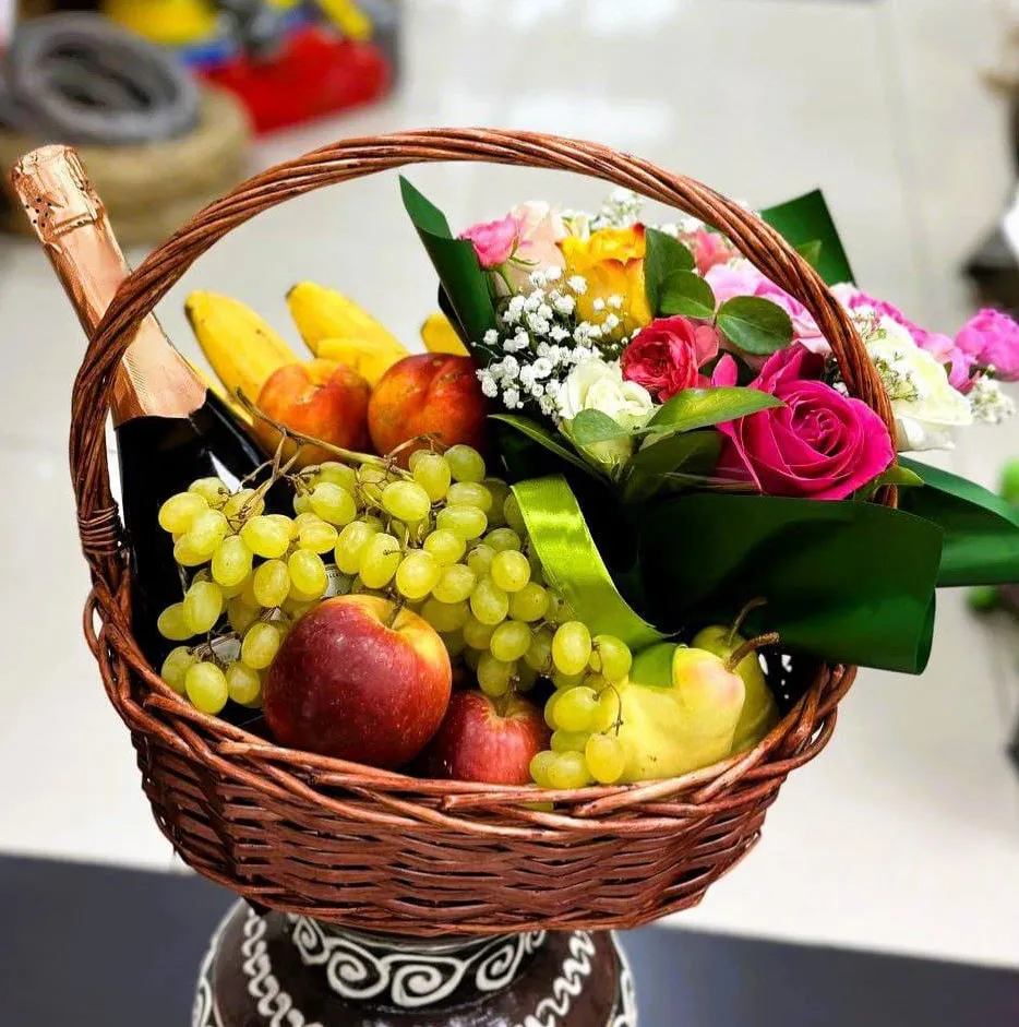 Корзина с фруктами и цветами – это настоящий символ изобилия и красоты. Она не только радует глаз, но и приносит радость в каждый дом. В такой корзине вы найдете яркие, сочные фрукты: солнечные апельсины, сладкие яблоки, спелые бананы и ароматные гроздья винограда. Каждое из этих лакомств наполняет корзину живыми цветами – нежными розами, яркими подсолнухами и элегантными лилиями, создавая гармоничное сочетание.