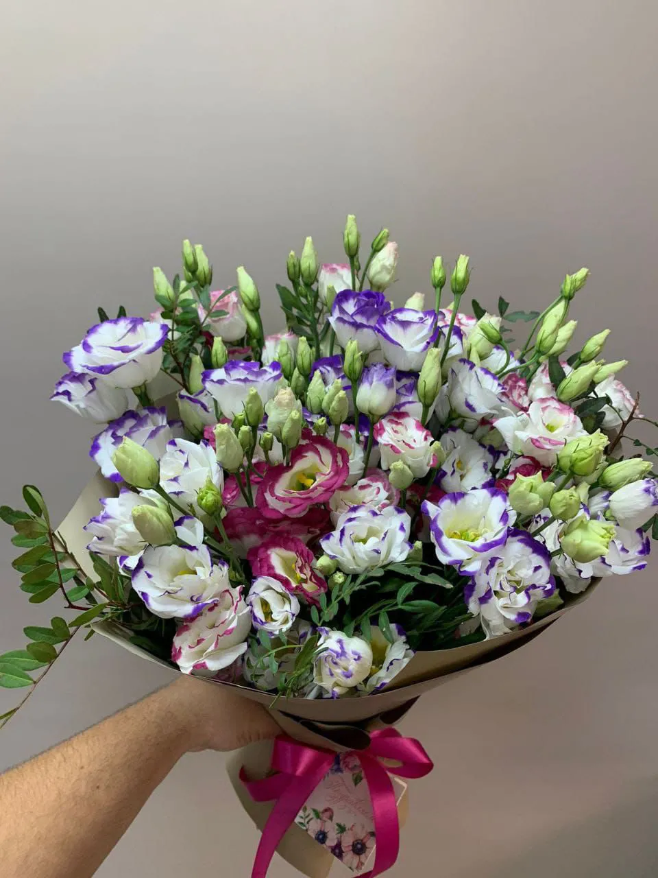 Букет, на который хочется смотреть бесконечно, не отрываясь. Восхитительные эустомы, их вы сможете подарить любимой на любой праздник, или преподнести, чтобы извиниться. Упаковка придает букету законченный вид, а лизиантусы делают его более воздушным и невесомым.