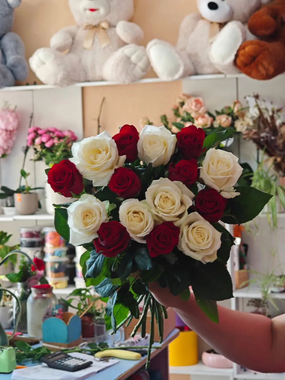 Букеты из красных и белых роз