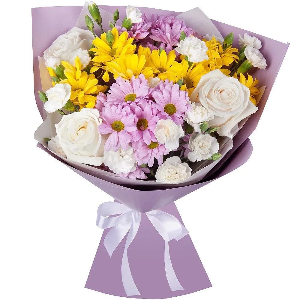 Вариант—Стандарт (Роза - 3 шт, хризантема кустовая - 4 шт., гвоздика - 5 шт)