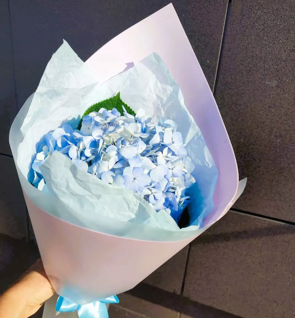 Букет из голубой гортензии — это истинный символ изысканности и нежности природы. Эти волшебные цветы, с их округлыми, пушистыми соцветиями, словно созданы для того, чтобы дарить радость и восхищение. Голубая гортензия завораживает своим ярким цветом, который ассоциируется с безоблачным небом и спокойствием морской волны.