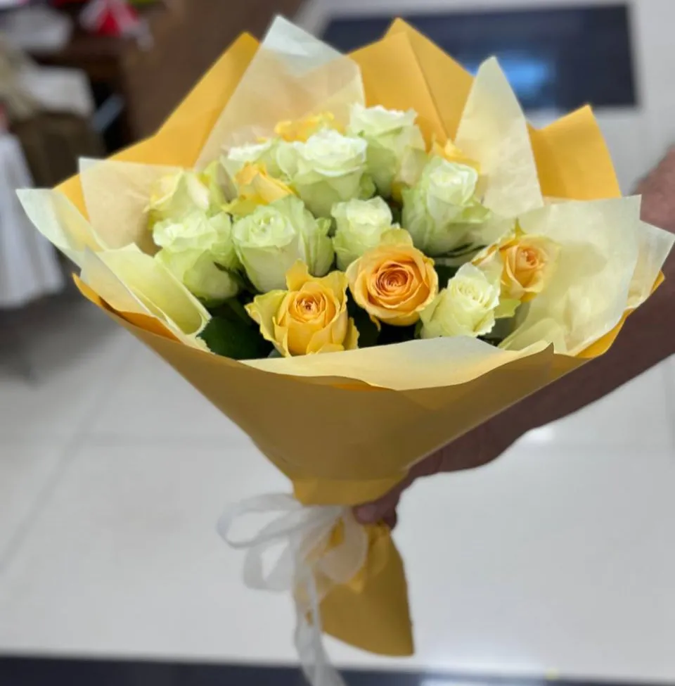 Простой, но трогательный букет из белых и желтых роз – это послание, понятное без слов. Белые розы, как символ искренности и чистоты, говорят о самых сокровенных чувствах. Желтые, словно маленькие солнышки, дарят тепло и хорошее настроение. Вместе они создают удивительную атмосферу любви и заботы. Этот букет – прекрасный способ выразить свою признательность, пожелать счастья или просто поднять настроение близкому человеку.